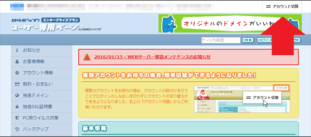 しかし先日、ロリポップレンタルサーバーに「簡単アカウント切り替え」という機能が追加されました。