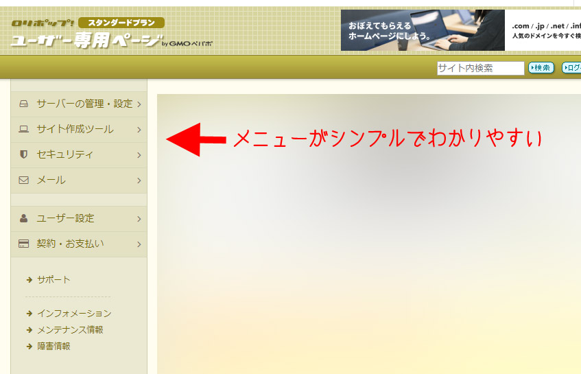 ロリポップはコントロールパネルのメニューがとにかくわかりやすいということ。