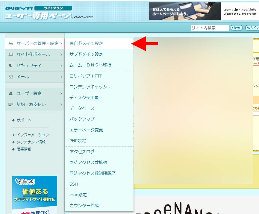 ロリポップに独自ドメインを追加する方法について、