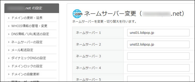 他社で取得したドメインの場合、ネームサーバーと呼ばれる設定をロリポップ向けに変更しなくてはならず、