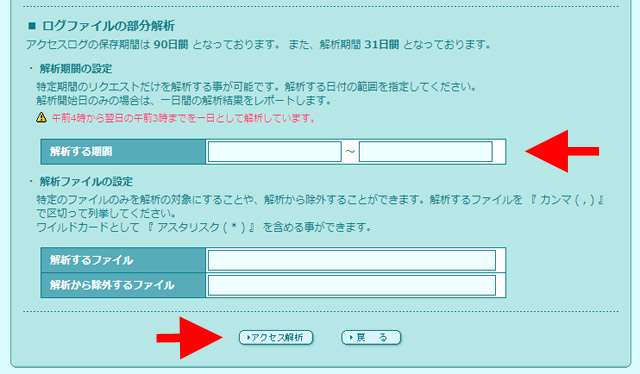 ここで解析したい期間を設定し、下部の「アクセス解析」ボタンをクリックしてください。