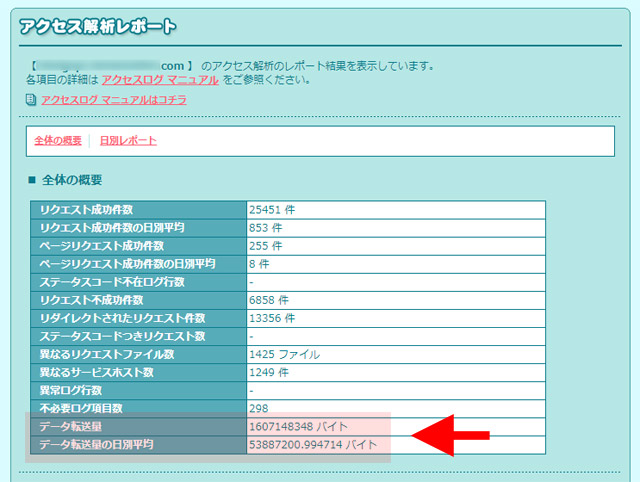 数字はともかく、転送量は上記のようにして簡単に調べられますので、一度チェックしてみるとよいでしょう。