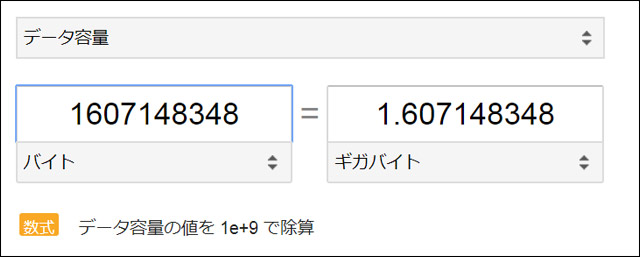 バイト(B)をギガバイト(GB)に換算してくれるサイトが出てくるはずなので、
