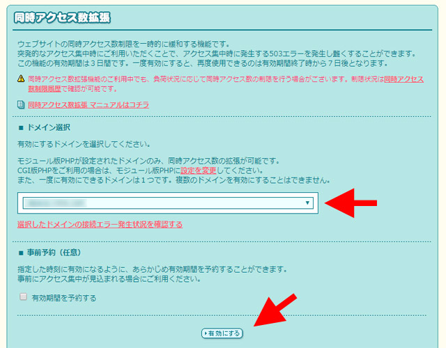 「同時アクセス数拡張」機能を利用できるのは、一度に1ドメインのみとなります。