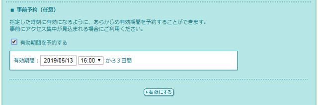 有効期間を選択してから「有効にする」ボタンをクリックしてください。