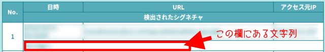 日時やURLの下部の欄に記載されている、検出されたシグネチャ(英語からなる文字列)を確認してください。